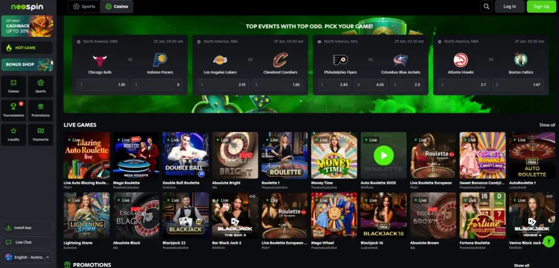 If your goal is neospin pokies with near-infinite scrolling, NeoSpin’s lobby style is right on-brand.